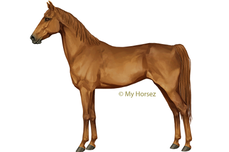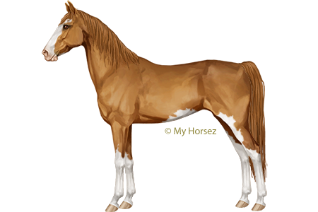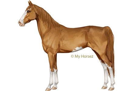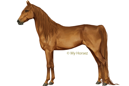 The Saddlebred is best known for its gaits. They have extreme knee movement, which, combined with the tölt, makes them very popular as show horses. They carry their graceful head high and have expressive eyes and fine ears. The back is short and the hindquarters long. One likes to see a long, high carried tail. They come in many colours, but chestnut, bay and black are the most common. They are between 1.53m and 1.65m tall.