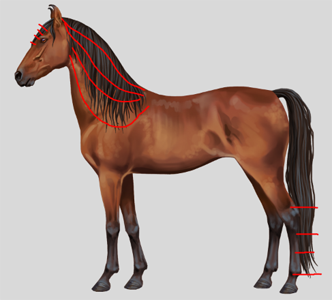 De verschillende lengtes manen moeten natuurlijk ook gemaakt worden, hiervoor zet ik eerst een paar lijnen zodat ik weet hoe lang elke manensoort moet worden. En dan is het weer schaduw en licht toevoegen!